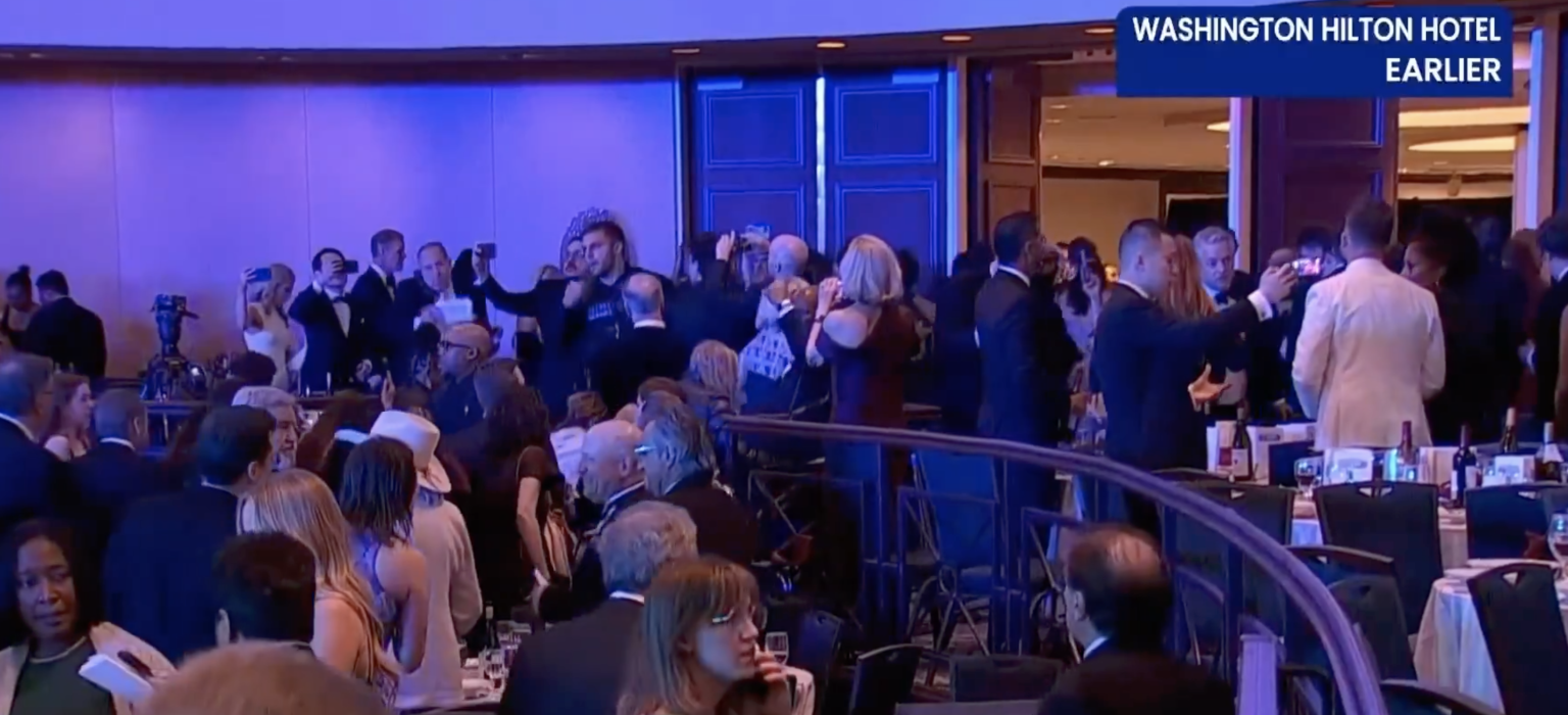 ‼️Video captures loud noises that sounded like gunshots at the White House Correspondents’ Dinner. Shortly after, President Trump and the First Lady, along with other White House officials, were evacuated. Heavily armed Secret Service agents entered the venue and quickly escorted… pic.twitter.com/MFT3uusbca